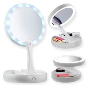 ESPEJO DOBLE CARA CON LUZ LED Y ORGANIZADOR JG988