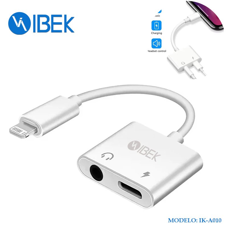 ADAPTADOR PARA AURICULAR 3.5MM Y CARGADOR LIGHTNING CARGA RÁPIDA PD IK-A010 IBEK