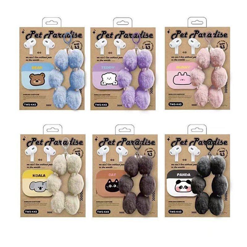 AURICULAR BLUETOOTH TWS K43 DISEÑOS SURTIDOS CON LLAVERO PELUCHE