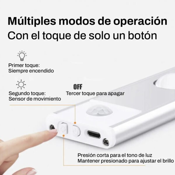 BARRA DE LUZ LED CON SENSOR RECARGABLE 40CM AUTOADHESIVA BLANCO FRÍO BLANCO CÁLIDO