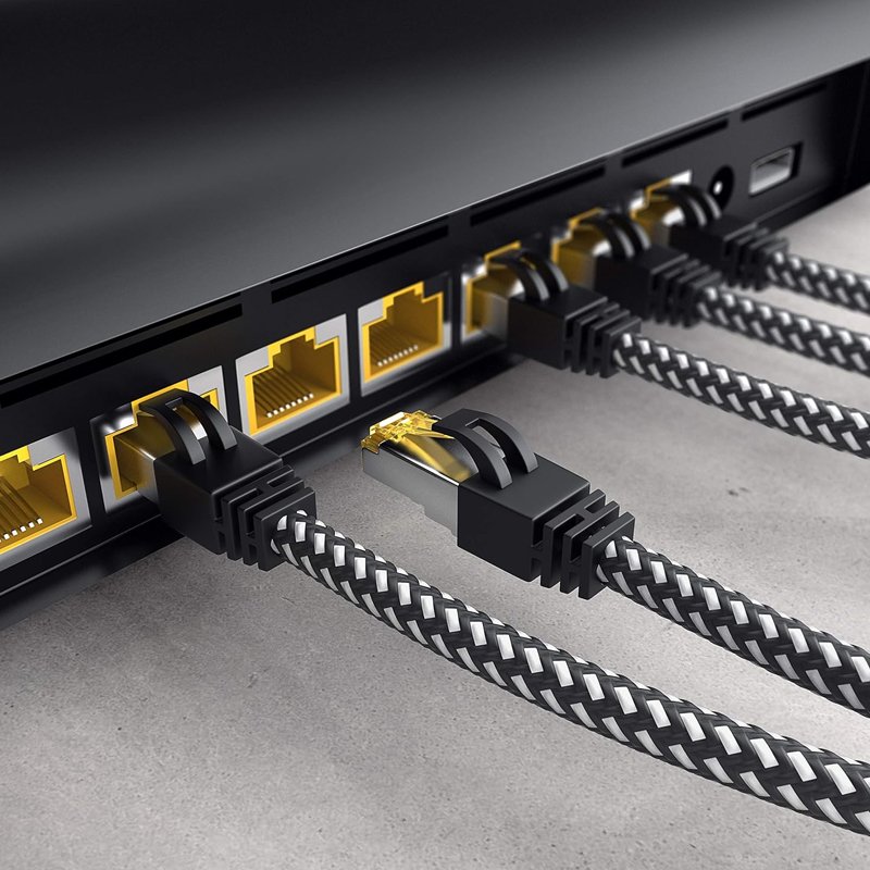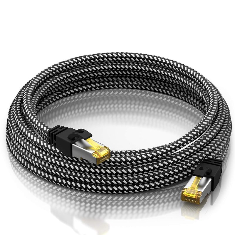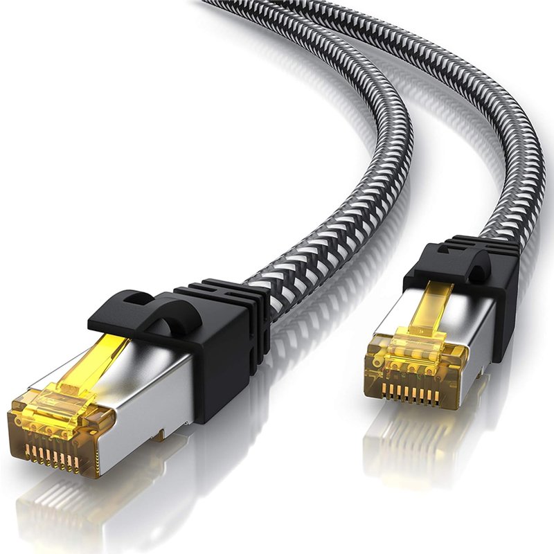 Cable de red con 2 conectores RJ45 y protección adicional a través del trenzado de algodón. El cable de red permite una alta velocidad de transmisión de hasta 10 Gbit/s | Compatible Cat6 Cat7 Cat8