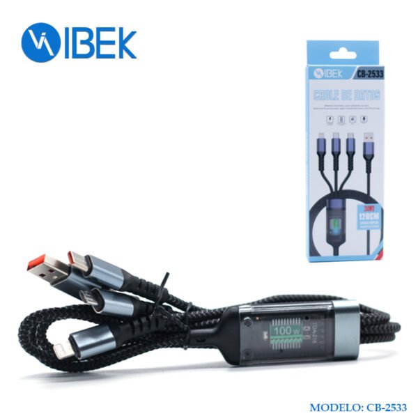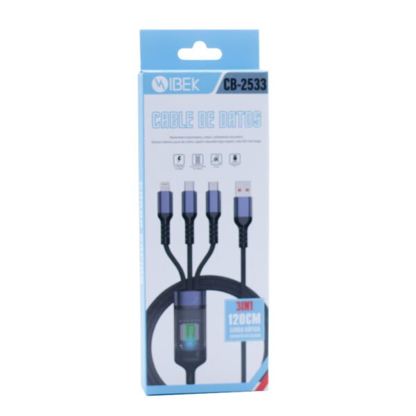 CABLE USB 3 EN 1 TYPE, LIGHTNING, V8 C 6A 100W 1M ENGOMADO CB-2533 IBEK