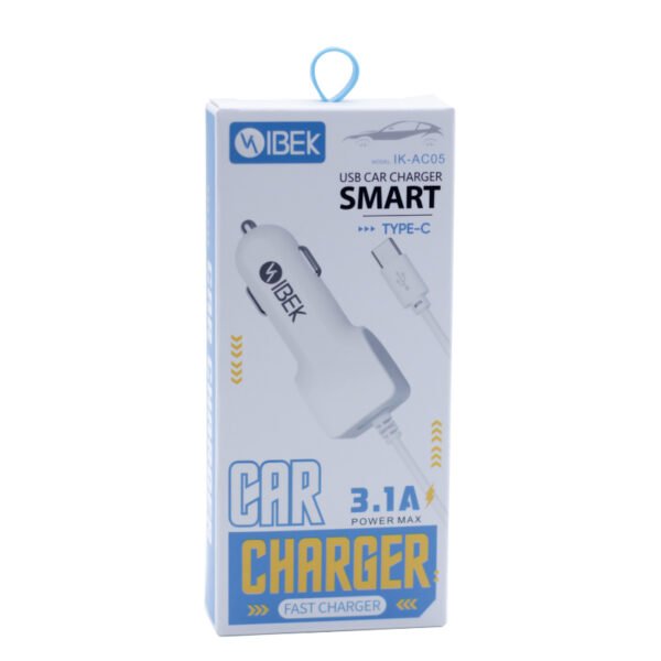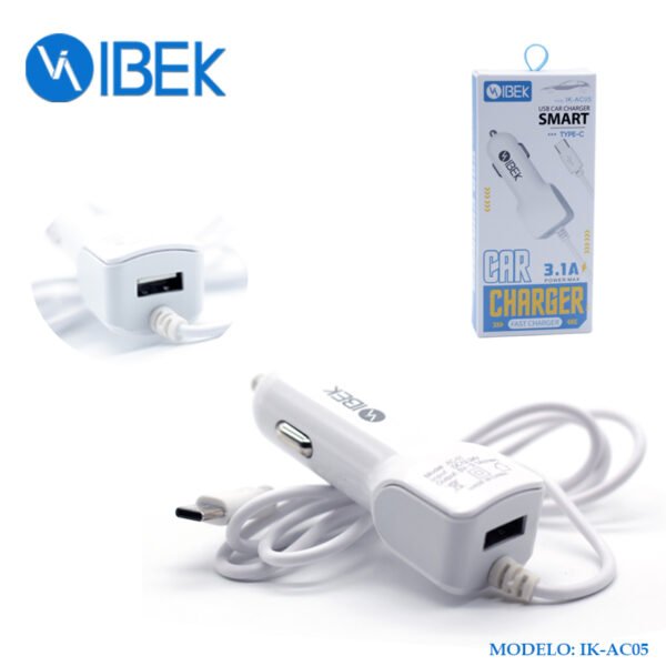 CARGADOR PARA AUTO 3.1A 1 PUERTO USB CON CABLE TYPE C IBEK IK-AC05