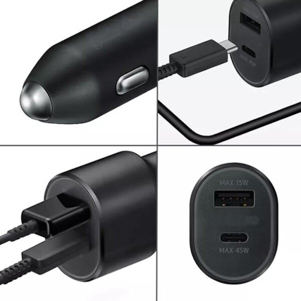 CARGADOR PARA AUTO PD 45W Y 15W SAMSUNG CON CABLE TYPE C A TYPE C
