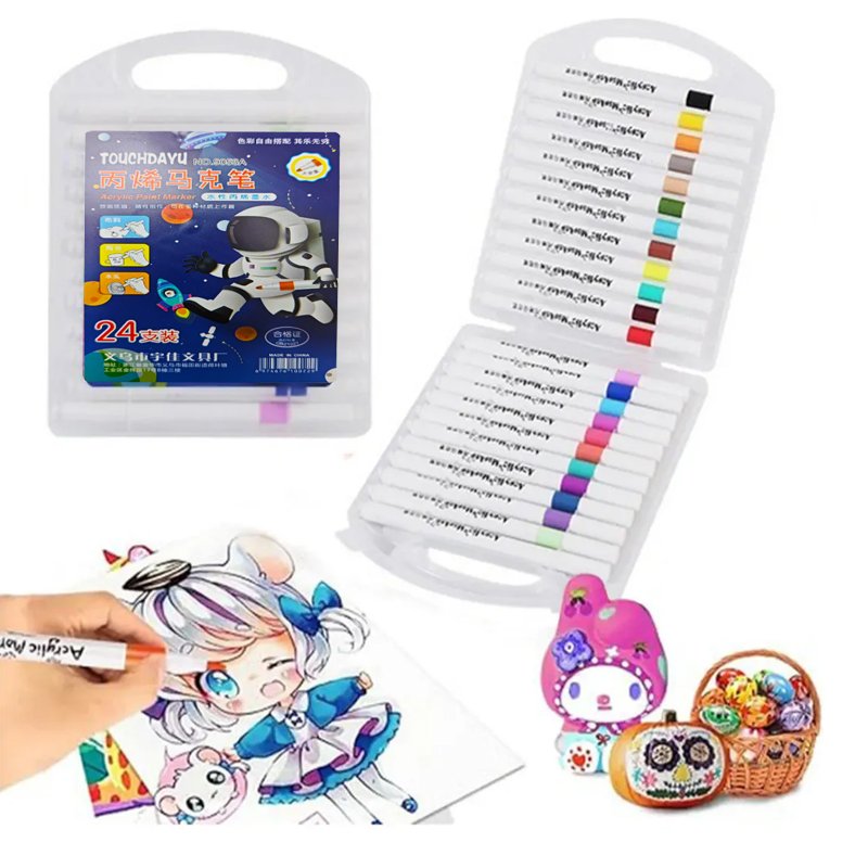 Los Marcadores Acrílicos, son la herramienta perfecta para dar rienda suelta a la creatividad. Diseñados para colorear, estos marcadores ofrecen una amplia gama de aplicaciones en diversas superficies como telas, vidrio y madera, lo que los convierte en un aliado ideal para proyectos escolares, manualidades y decoraciones.