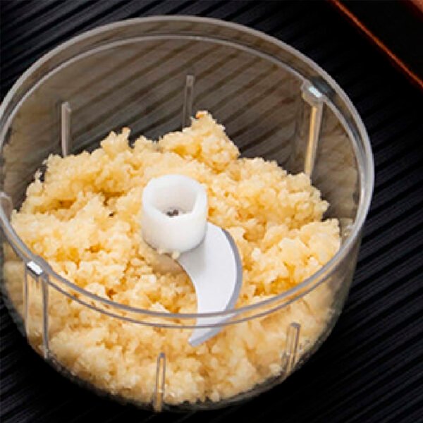 Diseñado con la hoja afilada, esta picadora de ajo puede cortarla de manera más uniforme y eficiente, y tiene un diseño de seguridad, por lo que no te hará daño a ti ni a tus hijos mientras lo usas, ya que no comenzará sin cerrar la cubierta.