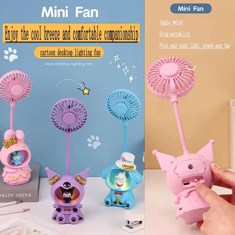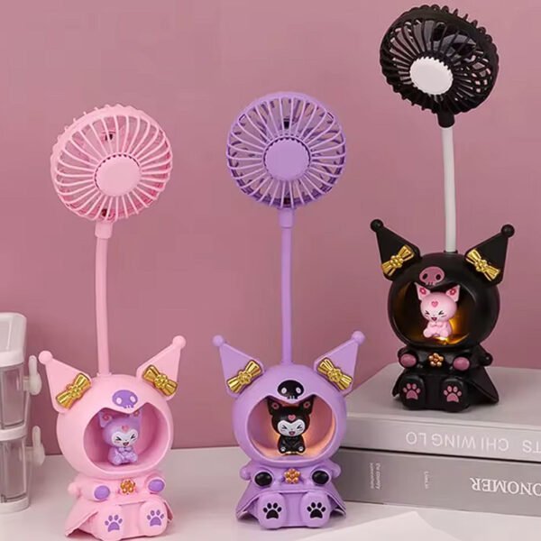Ventilador de mano iluminado con figura de Kuromi es un accesorio encantador, un ventilador refrescante y un producto versátil que puede usarse como luz nocturna. Su iluminación mide 31,5 cm de largo.