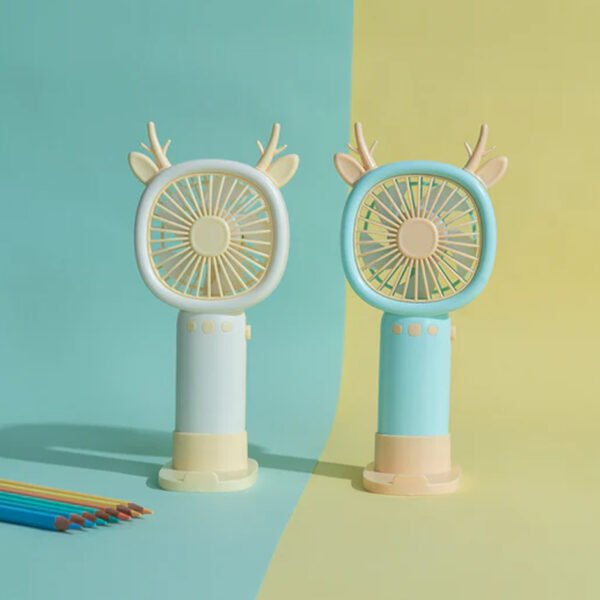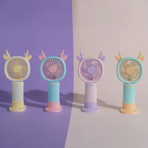 Ventilador portátil con base: Úsalo en la mano o déjalo fijo en su base.