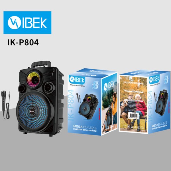 PARLANTE CON MICRÓFONO IBEK 8 PULGADAS CON LUZ RGB IK-P804