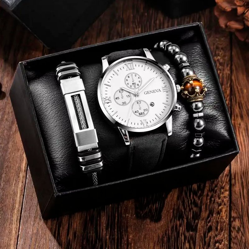 RELOJ PARA HOMBRE EN CAJA CON PULSERAS SH-003 COLOR NEGRO