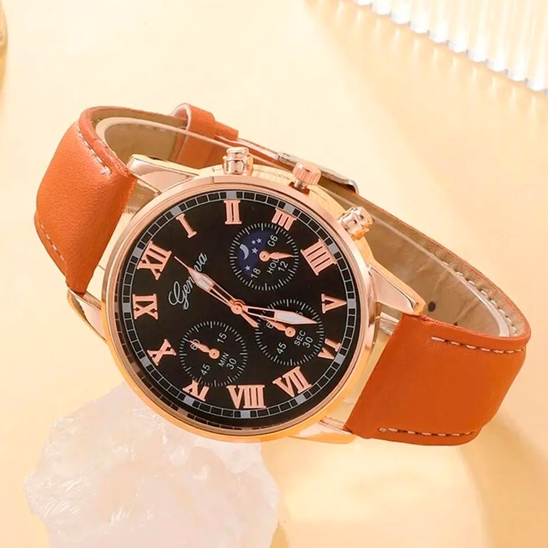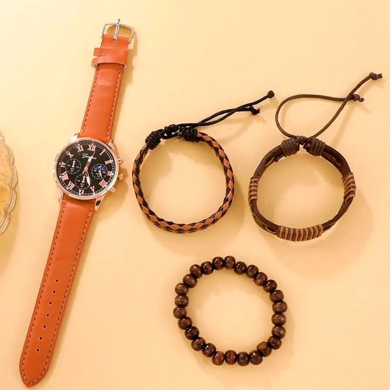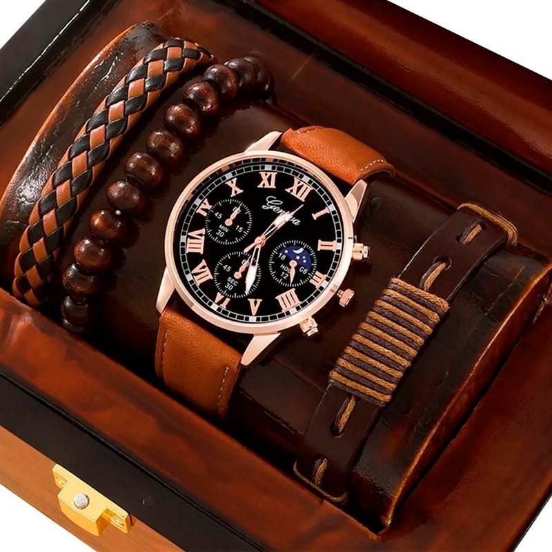 RELOJ PARA HOMBRE EN CAJA CON PULSERAS SH-004 COLOR MARRÓN