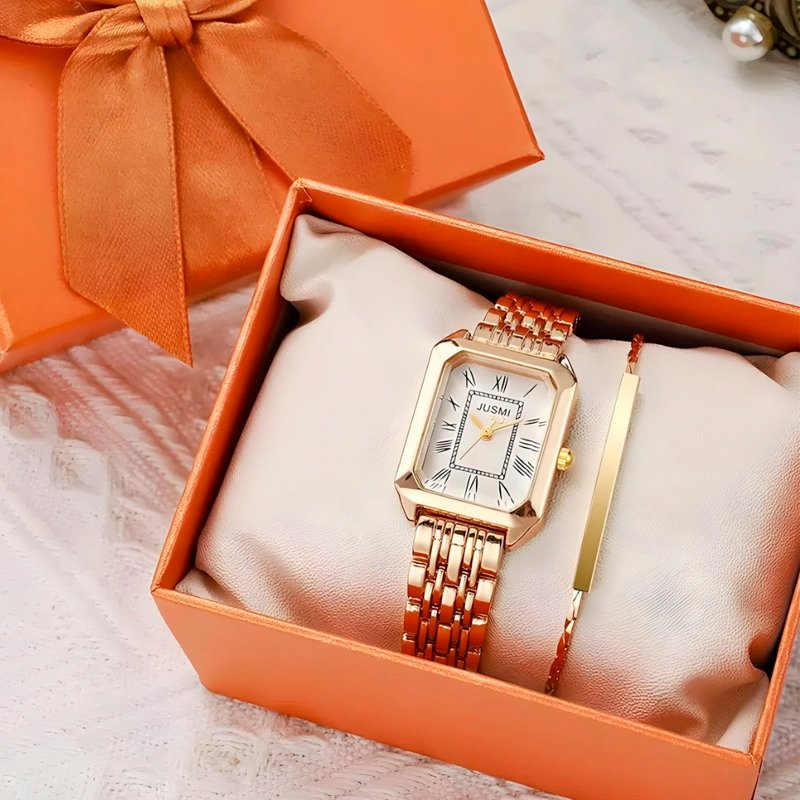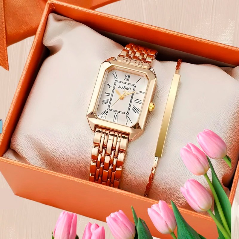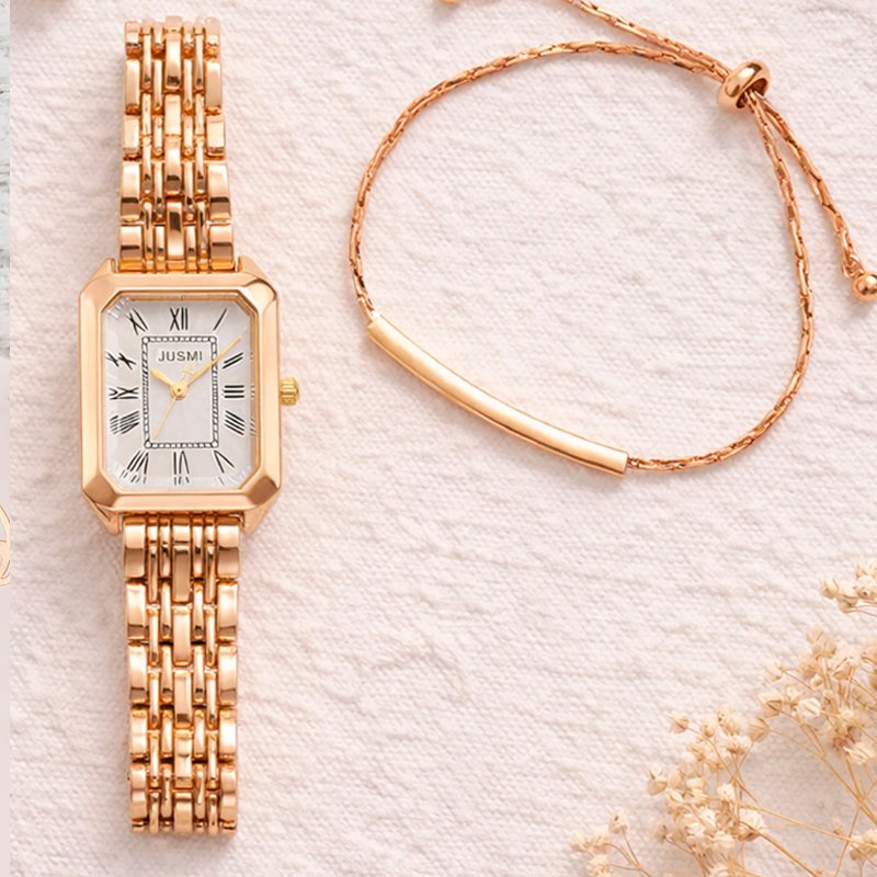 RELOJ PARA MUJER EN CAJA CON PULSERA SH-008 COLOR DORADO