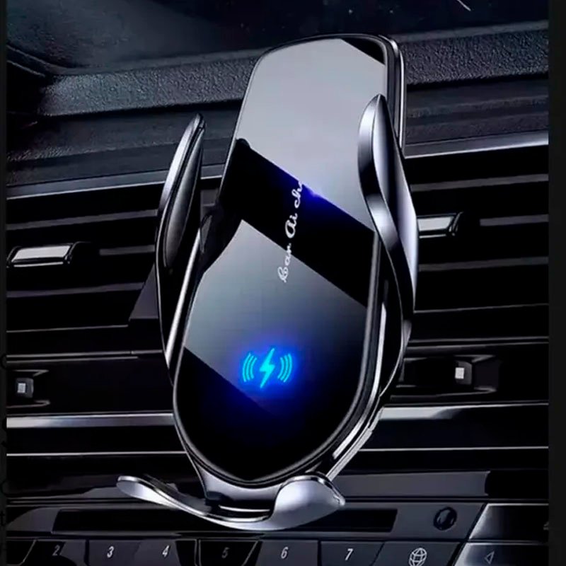 cargador inalámbrico para automóvil. Funciona mediante inducción electromagnética, lo que permite cargar dispositivos sin necesidad de cables. Estos cargadores utilizan el estándar Qi, que es compatible con una amplia gama de dispositivos.