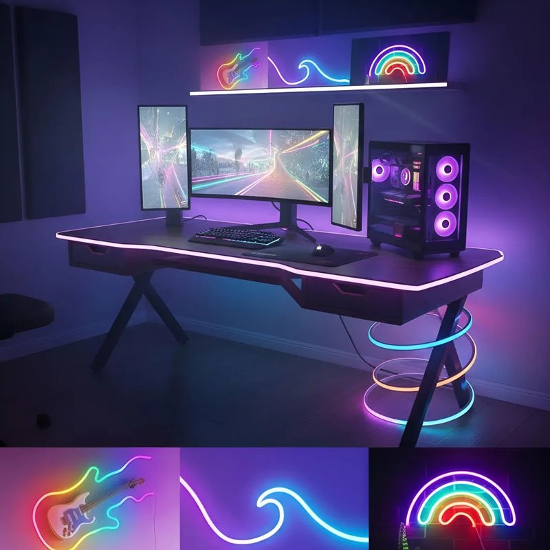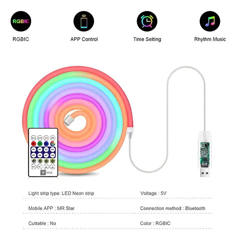 – Ip 65. Este kit de manguera de luces LED Neon RGB de 5 metros es ideal para crear ambientes únicos y personalizados. Con 30 LEDs por metro y una potencia de 8W, ofrece una iluminación vibrante y eficiente. Su diseño flexible permite adaptarlo a diversas formas y espacios. Además, cuenta con un grado de protección IP65, lo que lo hace resistente al agua y adecuado para uso en exteriores. Incluye un controlador de color y fuente de alimentación, facilitando su instalación. Compatible con asistentes virtuales en Android e iOS, podrás controlar la iluminación desde tu dispositivo móvil. ¡Transforma tu espacio con estilo!