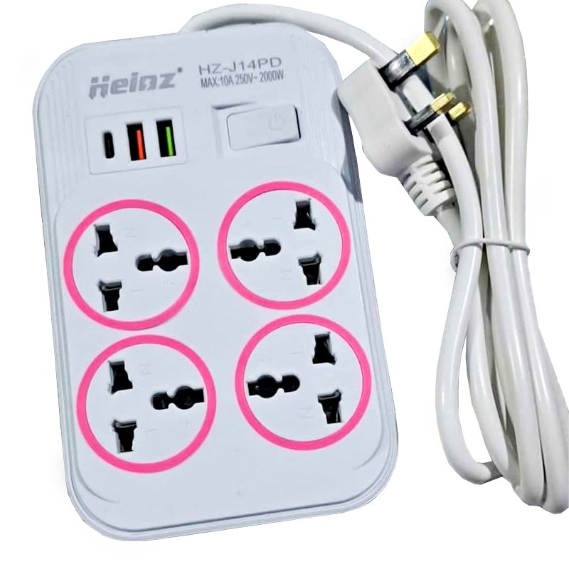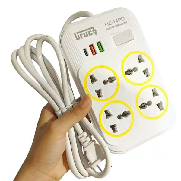 ZAPATILLA ALARGUE ENCHUFE 220V 2 USB Y 1 USB TYPE C 4 TOMAS ENCHUFE HZ-J14PD